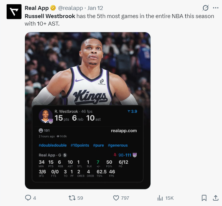 全场比赛威少34分钟,16中8+三分8中4,拿到22分7助攻5篮板1抢断5失误,命中率50%;